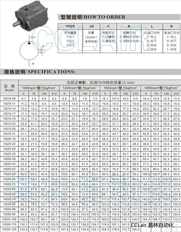 VQ15-08F,VQ15-11F,VQ15-14F,VQ25-18F,VQ25-22F,VQ25-26F,Q35-60F,VQ35-65F,定量輪葉泵浦