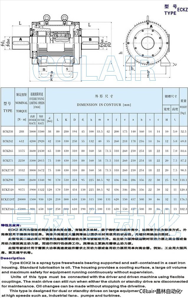 ECKZ38,ECKZ42,ECKZ65,ECKZ75,ECKZ75T,ECKZ90,ECKZ120,ECKZ120T,ECKZ160,單向離合器