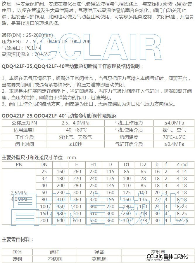 QDQ421F-25-DN25,QDQ421F-25-DN32,QDQ421F-40-DN25,氣動(dòng)緊急切斷閥