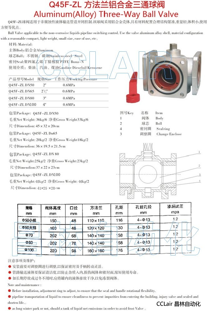 Q45F-ZL-DN50,Q45F-ZL-DN65,Q45F-ZL-DN80,Q45F-ZL-DN100,鋁合金三通球閥