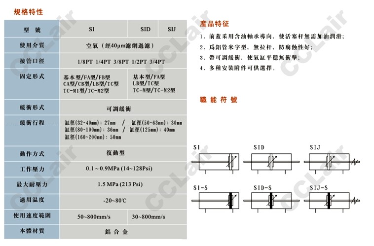SI80X25-S,SIJ80X25-S-30,SI80X50-S,SIJ80X75-S,SIJ80X75-S,SIJ80X100-S,標準氣缸