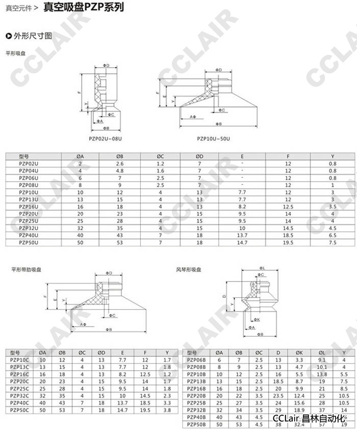 PZP08B,PZP10B,PZP13B,PZP16B,PZP20B,PZP25B,PZP32B,PZP40B,PZP50B,真空吸盤