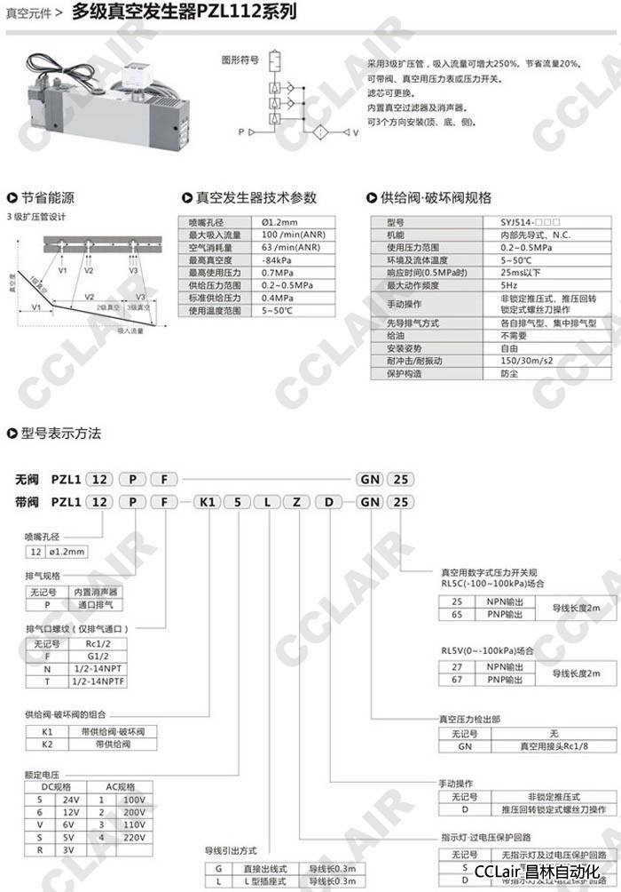 PZL112P-K15G,PZL112PF-K15G,PZL112PN-K15G,PZL112PT-K15G,PZL112P-K25G,多級(jí)真空發(fā)生器