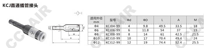 KCJ04-99,KCJ06-99,KCJ08-99,KCJ10-99,KCJ12-99,直通插管接頭