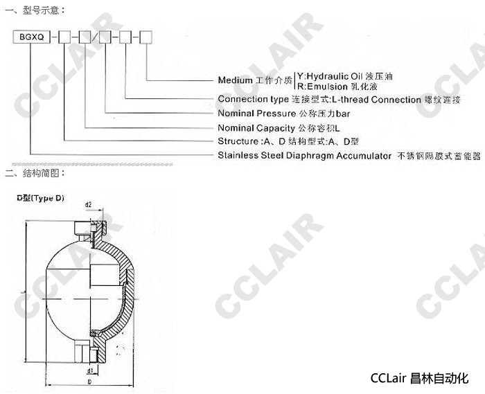 BGXQ-D-0.35/18,BGXQ-D-0.35/18,BGXQ-D-0.75/15,BGXQ-D-0.75/15,不銹鋼隔膜式蓄能器