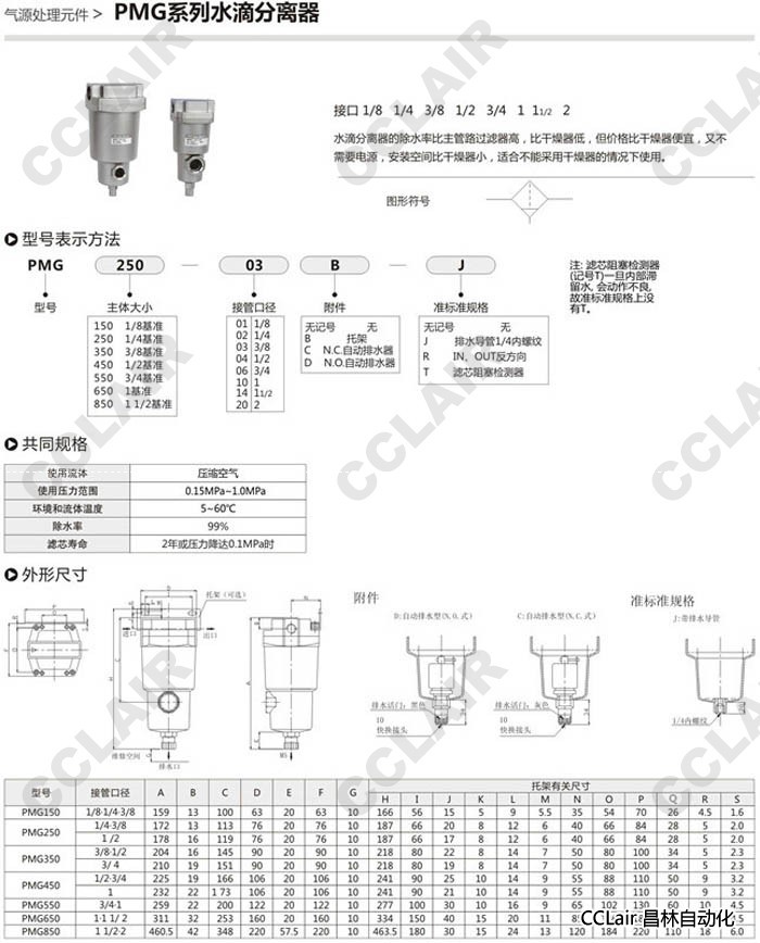PMG150,PMG250,PMG350,PMG450,PMG550,PMG650,PMG850,水滴分離器