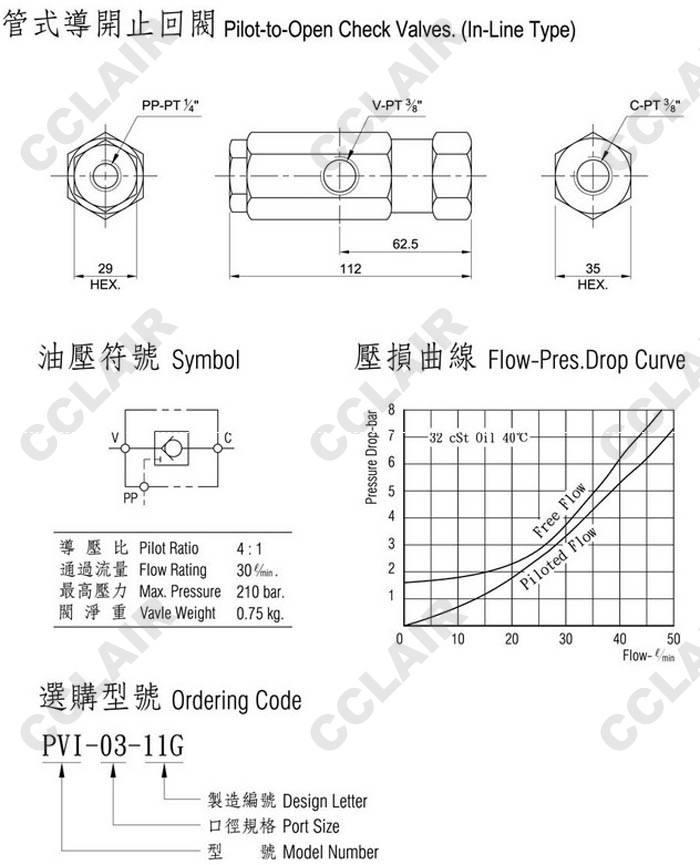 PVI-03-11G,液控單向閥
