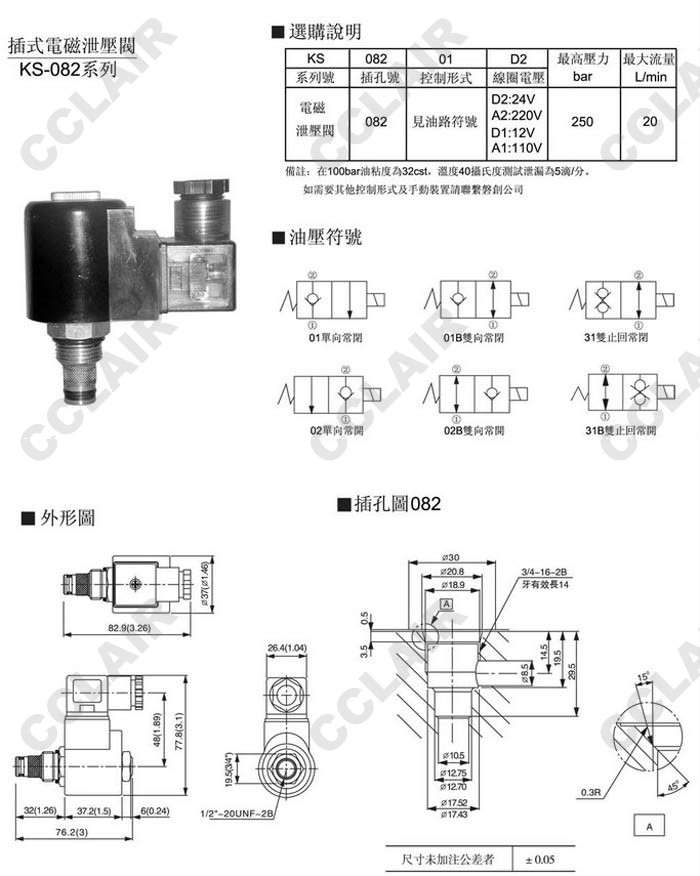KS-082-01,KS-082-02,KS-082-01B,KS-082-02B,KS-082-31,KS-082-31B,插式電磁泄壓閥