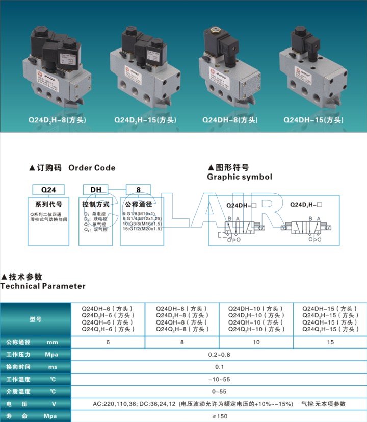Q24QH-6,Q24QH-8,Q24QH-10,Q24QH-15,Q24Q2H-6,Q24Q2H-8,Q24Q2H-10,Q24Q2H-15,滑柱式換向閥 (方頭) |