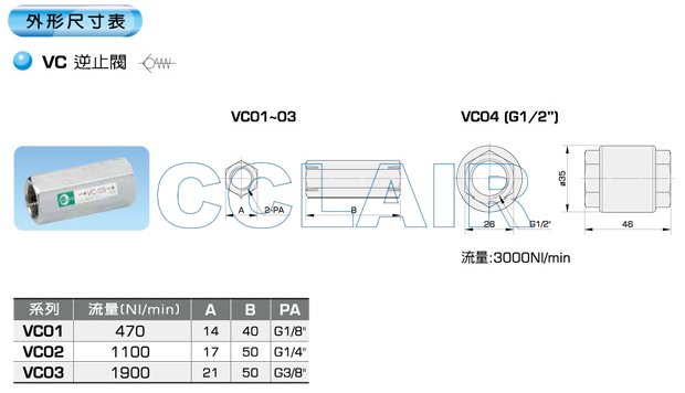 VC01,VC02,VC03,VC04,逆止閥,無錫昌林