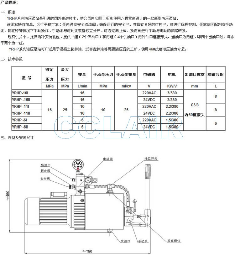 YRHP-16I,YRHP -16II,YRHP -11I,YRHP -11II,YRHP-6I,YRHP-6II,液壓站