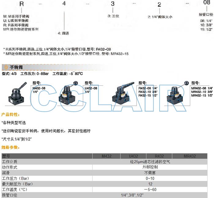 M432-08,U432-08,R432-08,MR432-08,M432-10,U432-10,R432-10,MR432-10,M432-15,U432-15,手轉(zhuǎn)閥