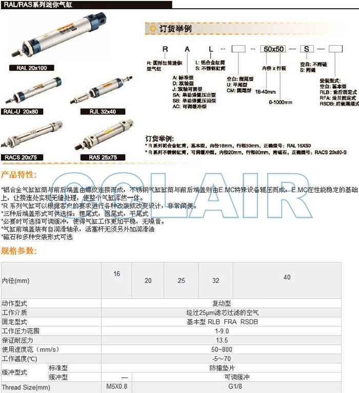 RAL16X50,RDL16X50,RJS16X50,RSALU16X50,RSBSU16X50,RACSU16X50,迷你氣缸