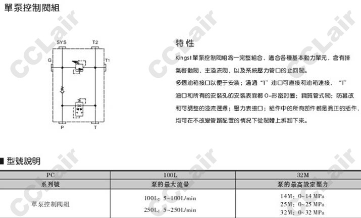 PC-100L-14M,PC-250L-14M,PC-100L-25M,PC-250L-25M,PC-100L-32M,PC-250L-32M,單泵控制閥組
