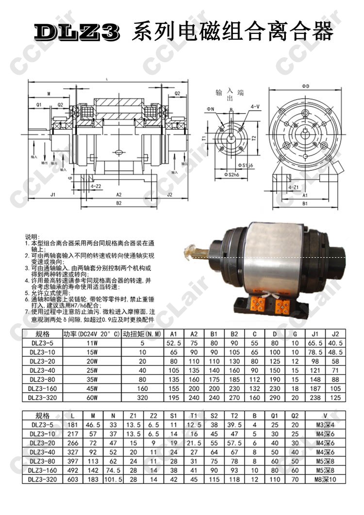 DLZ3-5,DLZ3-10,DLZ3-20,DLZ3-40,DLZ3-80,DLZ3-160,DLZ3-320,電磁組合離合器