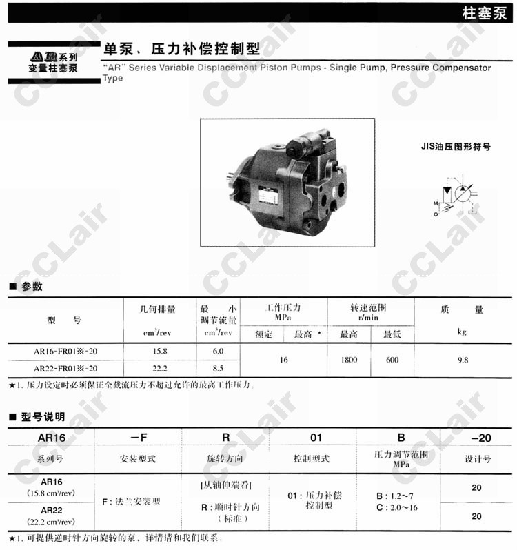 AR16-FR01B-20,AR16-FR01C-20,AR22-FR01B-20,AR22-FR01C-20,變量柱塞泵,YUCIYUKEN榆次油研