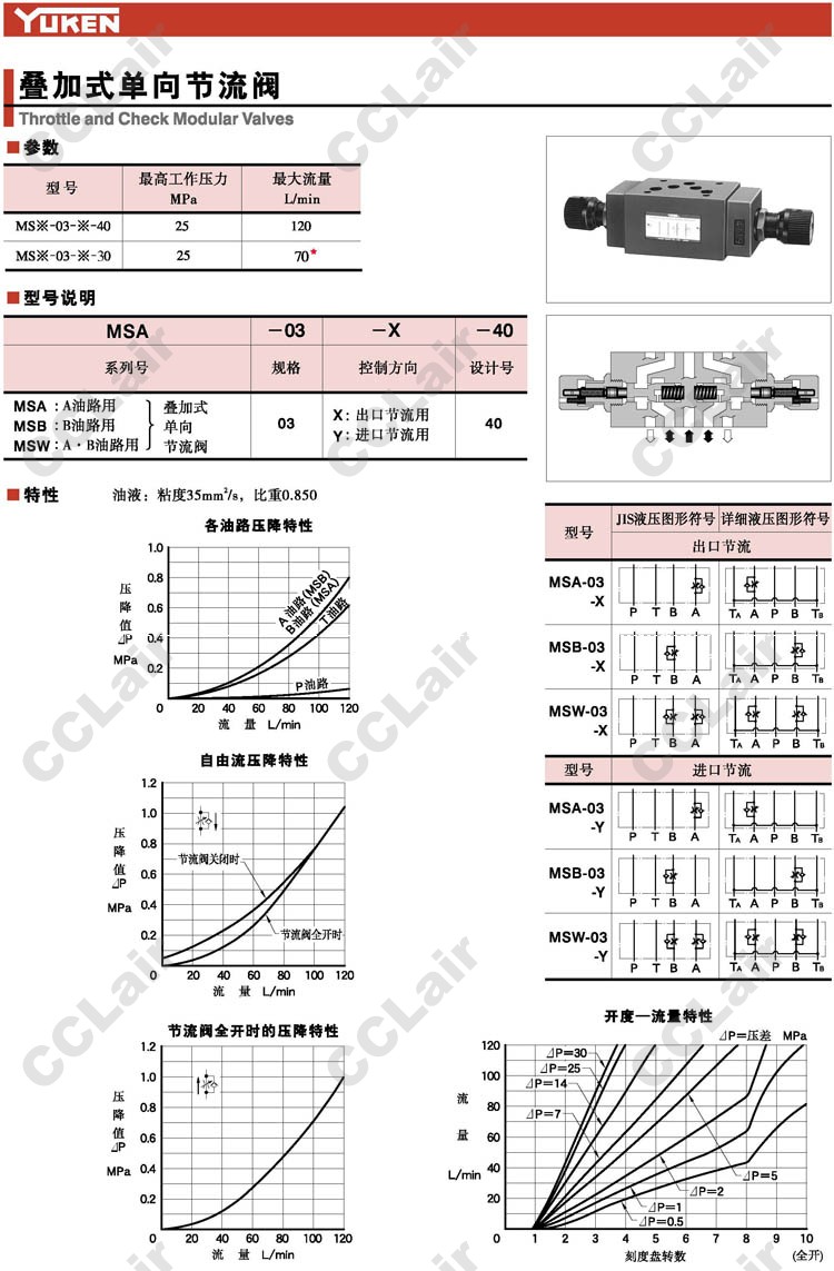 MSA-03-X-40,MSA-03-Y-40,MSB-03-X-40,MSB-03-Y-40,MSW-03-X-40,MSW-03-Y-40,疊加式單向節(jié)流閥,YUCIYUKEN榆次油研