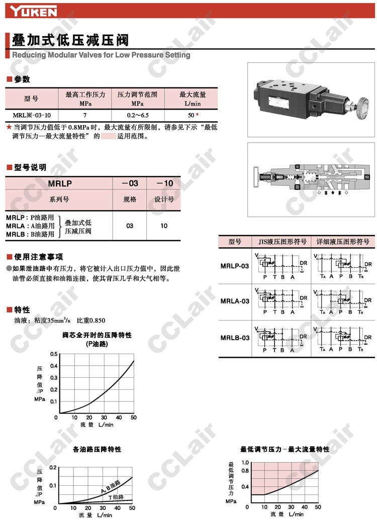 MRLP-03-10,MRLA-03-10,MRLB-03-10,疊加式低壓減壓閥,YUCIYUKEN榆次油研