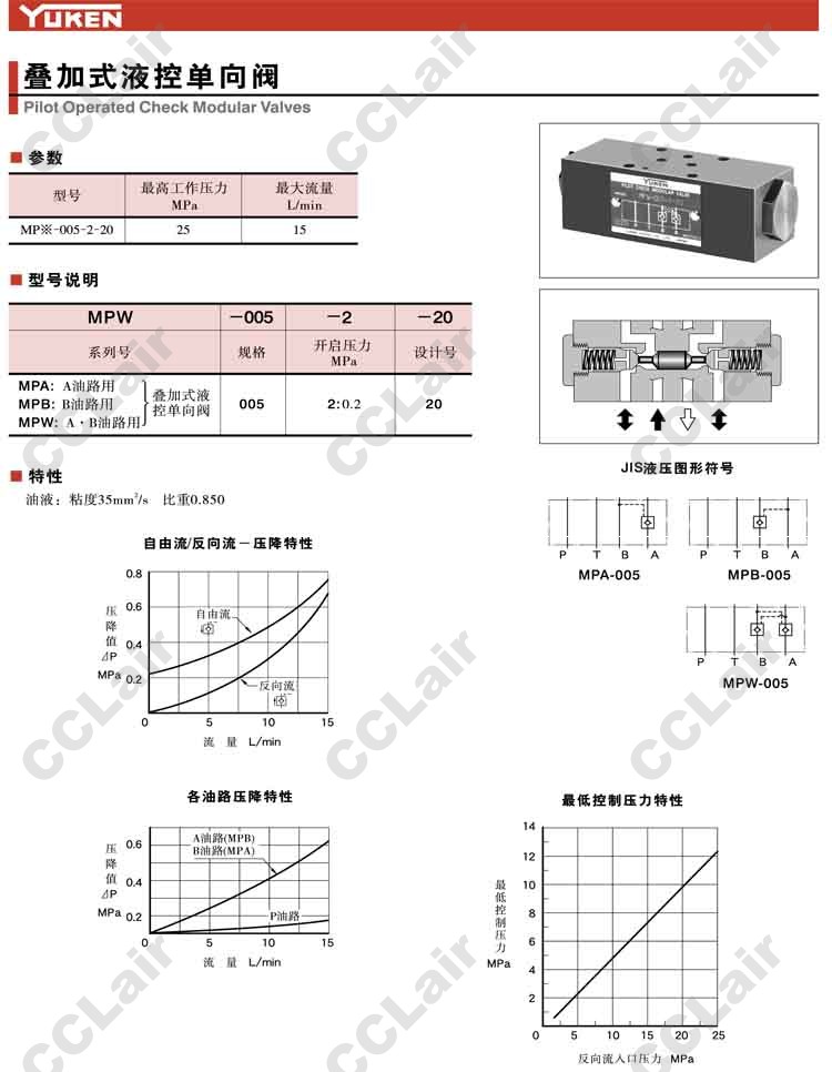 MPA-005-2-20,MPB-005-2-20,MPW-005-2-20,疊加式液控單向閥,YUCIYUKEN榆次油研