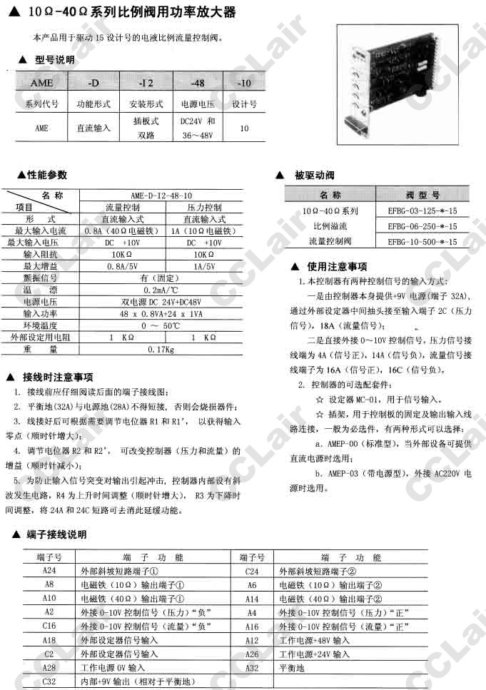 AME-D-12-48-10,比例閥用功率放大器,YUCIYUKEN榆次油研