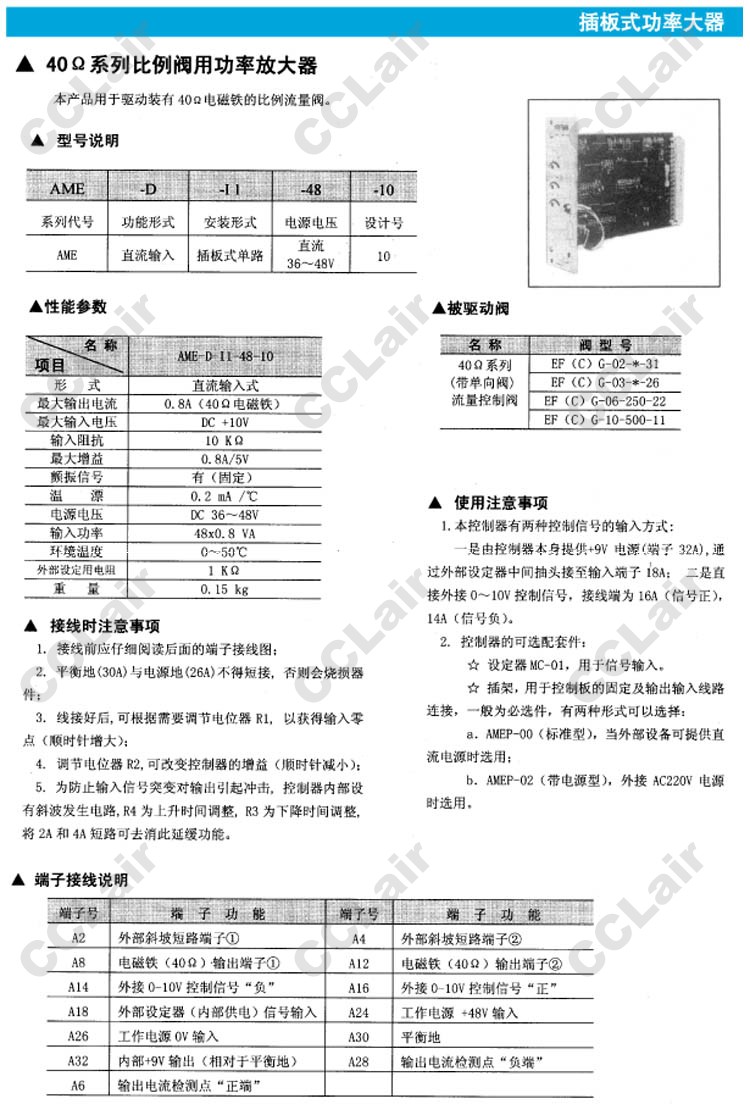 AME-D-11-48-10,比例閥用功率放大器,YUCIYUKEN榆次油研