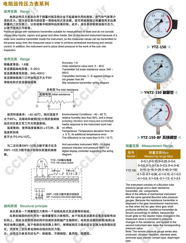 YTZ-150,YNTZ-150,YTZ-150-BF,電阻遠(yuǎn)傳壓力表,無(wú)錫昌林