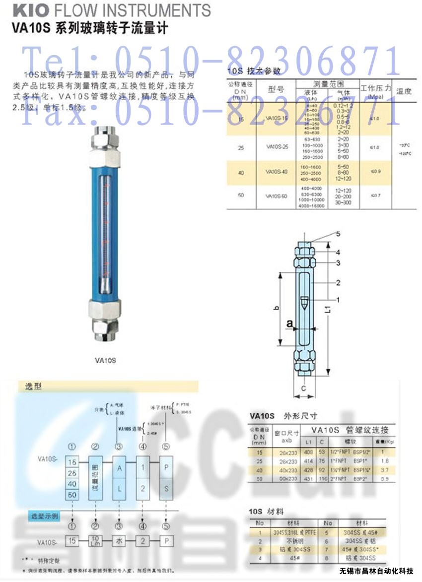 VA10S-15,VA10S-25,VA10S-40,VA10S-50,玻璃轉(zhuǎn)子流量計