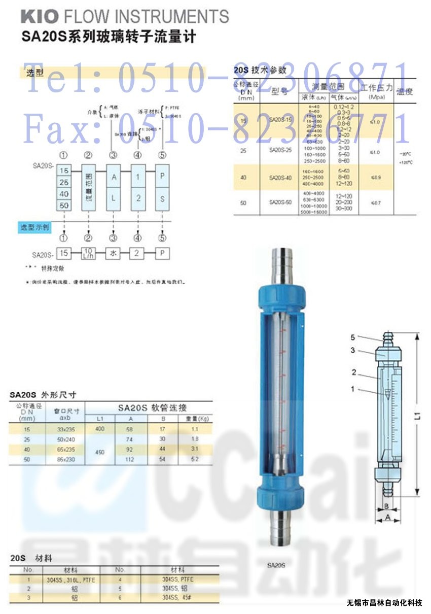 SA20S-15,SA20S-25,SA20S-40,SA20S-50玻璃轉子流量計