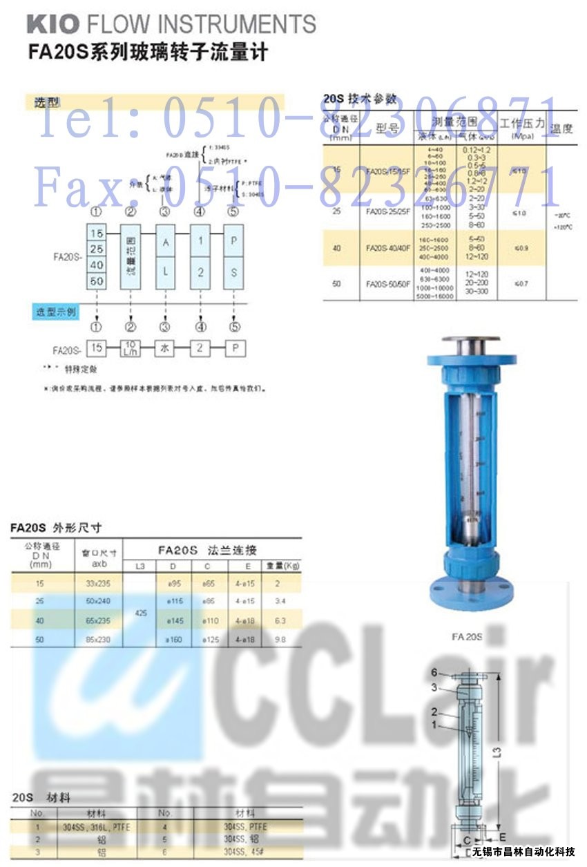 FA20S-40/40F,FA20S-50/50F玻璃轉子流量計