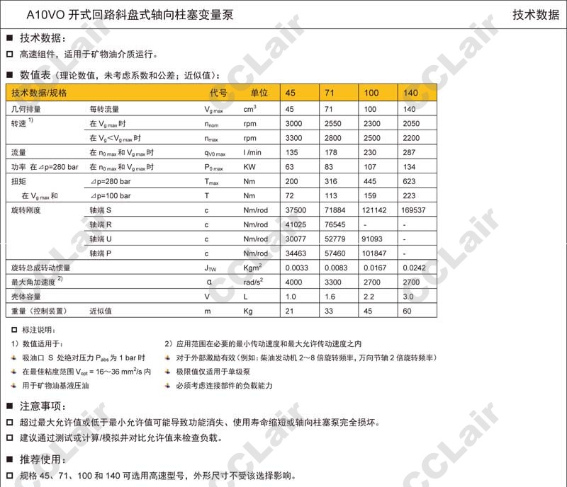 A10VO100DR/31R-VWC11NOO,CCLair A10VO100DR/31R-VWC12NOO,A10VO100DR/31R-VWC11K01,A10VO100DR/31R-VWC12K01,