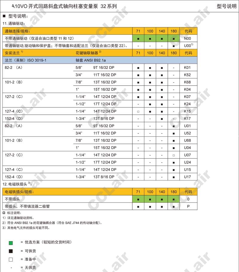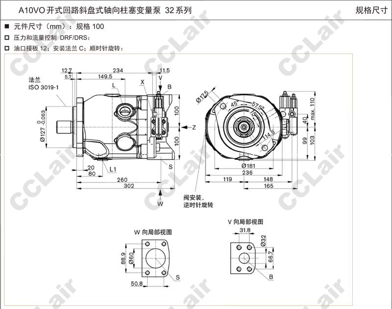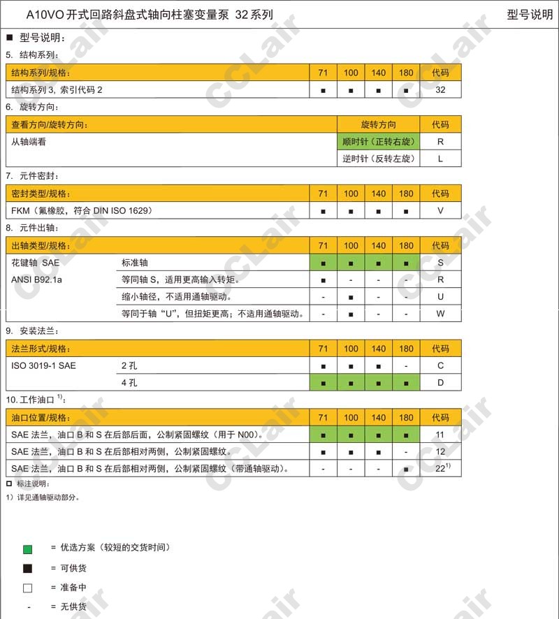 A10VO100DRG/32R-VUD11NOO,CCLair A10VO100DRG/32R-VWC11NOO,A10VO100DRG/32R-VWD11NOO,