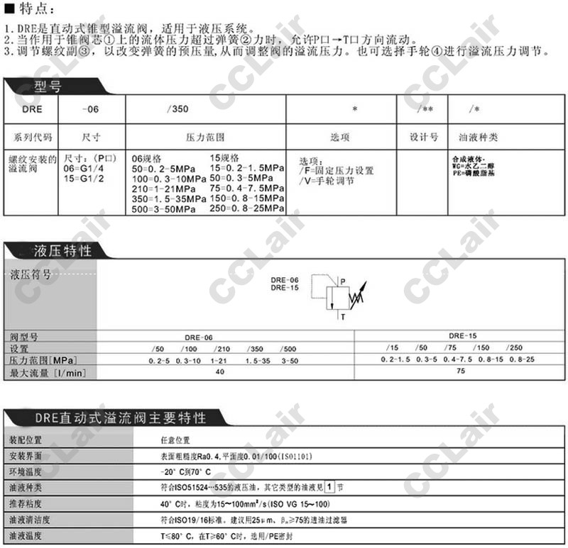 DRE-06/50,DRE-06/100,DRE-06/210,DRE-06/350,DRE-15/50,DRE-15/75,DRE-15/150,DRE-15/250,直動式溢流閥 |