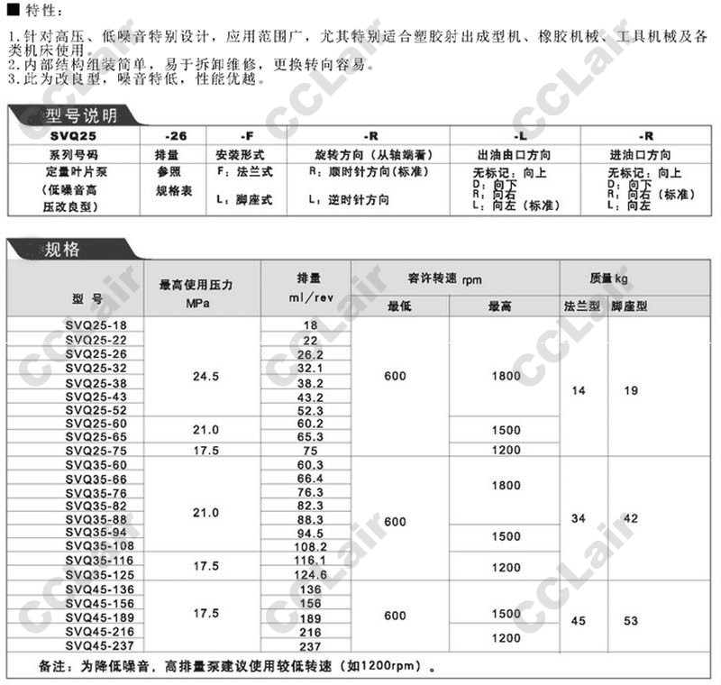 SVQ25-18,SVQ25-22,SVQ25-26,SVQ25-32,SVQ35-60,SVQ35-66,SVQ35-76,SVQ45-136,SVQ45-156,SVQ45-189,定量葉片泵
