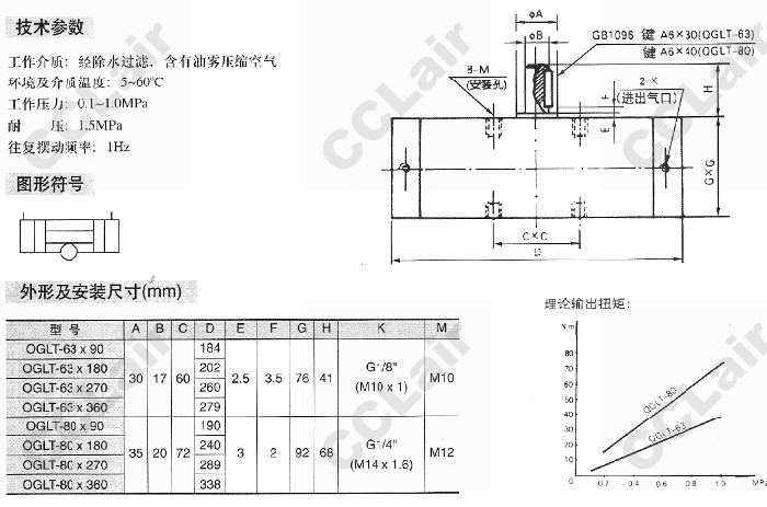 QGLT-63,QGLT-80,QGLT-63×360,QGLT-80×90,齒輪齒條式擺動(dòng)氣缸