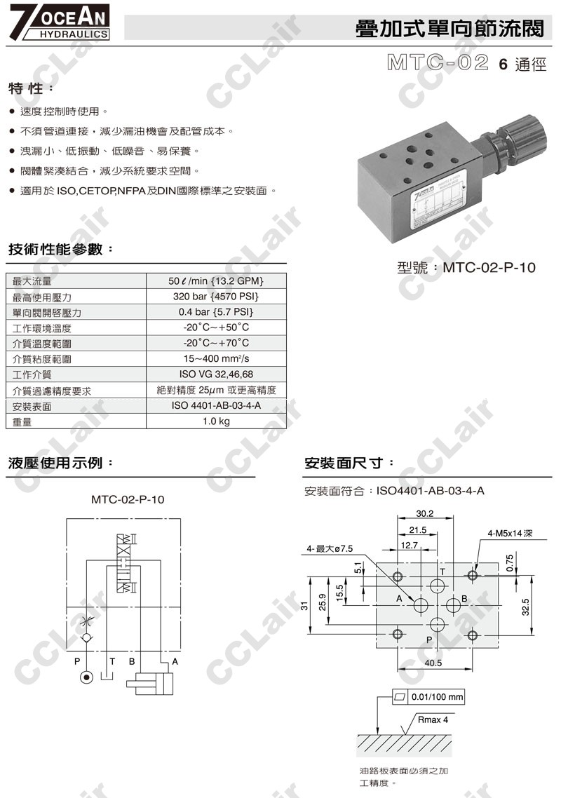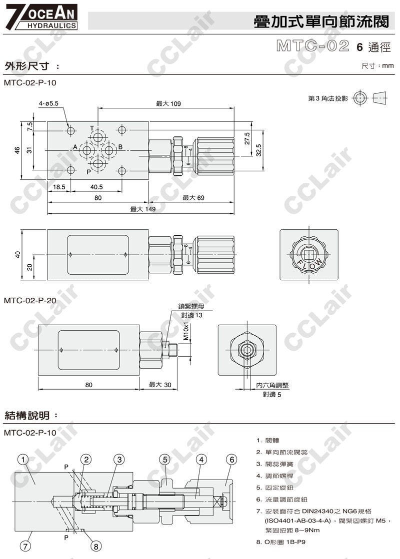 MTC-02-P-10,MTC-02-P-20,7OCEAN七洋疊加式單向節(jié)流閥