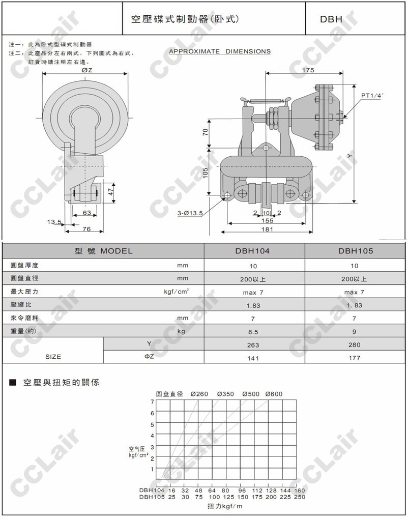 DBH104,DBH105,臥式空壓碟式制動器