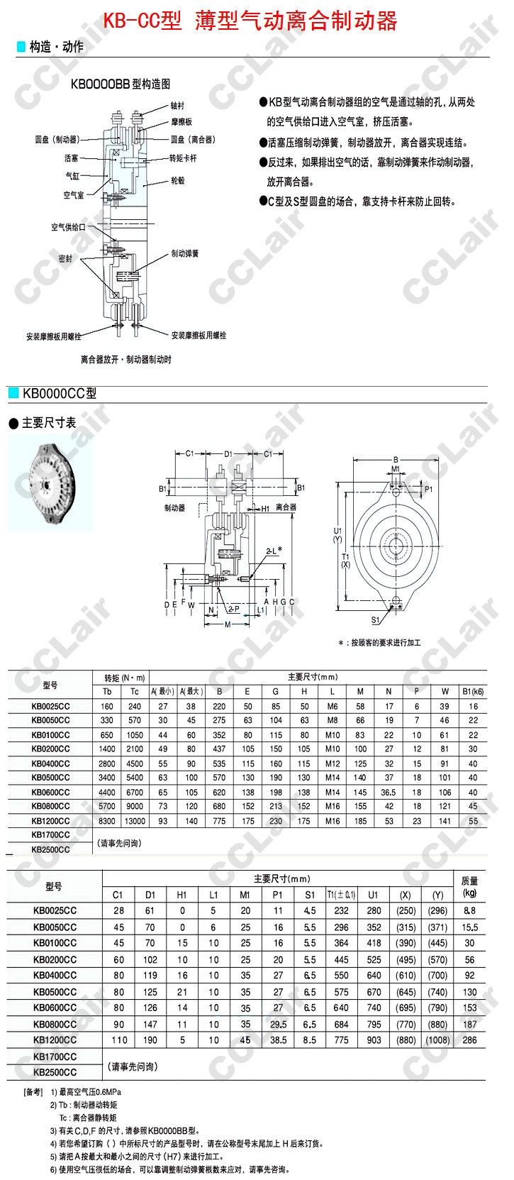 KB0025CC,KB0050CC,KB0100CC,KB0200CC,KB0400CC,KB0500CC,KB0600CC,KB0800CC,KB2500CC,薄型氣動(dòng)離合制動(dòng)器
