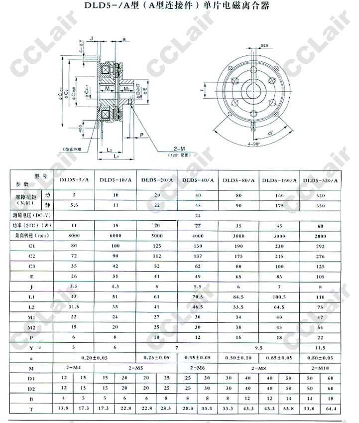 DLD5-5/A,DLD5-10/A,DLD5-20/A,DLD5-40/A,DLD5-80/A,DLD5-160/A,DLD5-320/A,單片電磁離合器