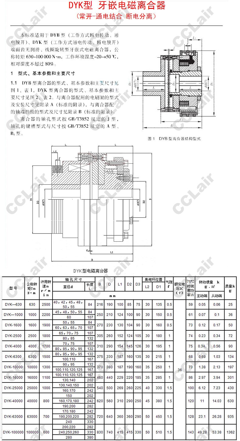 DYK-630,DYK-1000,DYK-1600,DYK-2500,DYK-4000,DYK-6300,DYK-10000,DYK-16000,DYK-25000,牙嵌電磁離合器