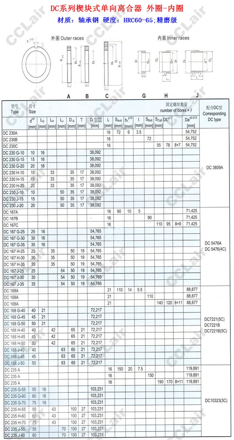 DC230,DC167,DC168,DC235,DC230G-15,DC167J-30,DC168J-40,DC235J-70,DC167C,楔塊式單向離合器