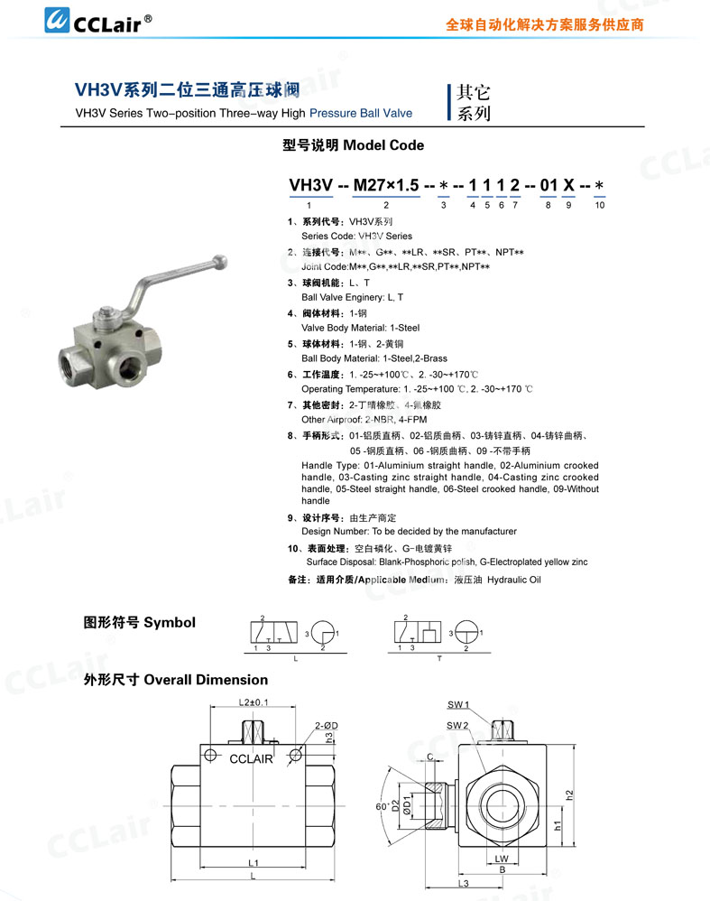 VH3V-NPT1/4,VH3V-NPT3/8,VH3V-NPT1/2,VH3V-NPT3/4,VH3V-NPT1,二位三通高壓球閥