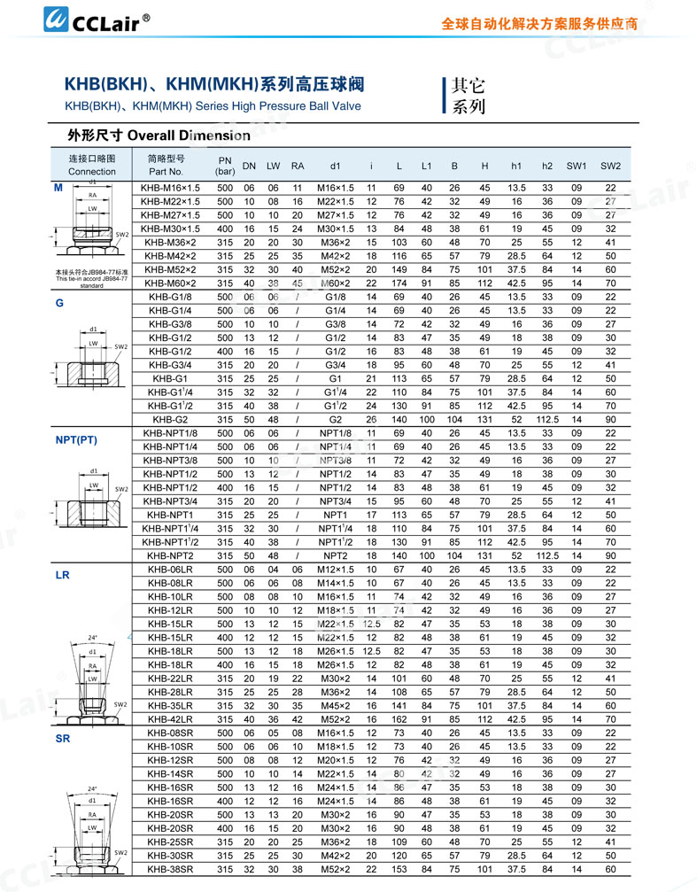 KHM-M12*1.25,KHM-M16*1.5,KHM-M22*1.5,KHM-M27*1.5,KHM-M30*1.5,KHM-M36*2,KHM-M42*2,KHM-M52*2,KHM-M60*2,高壓球閥