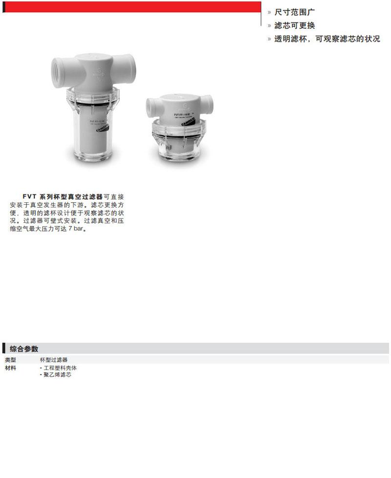 FVT-FF-1/8-80,FVT-FF-1/4-80,FVT-FF-3/8-80,FVT-FF-1/2-80,FVT-FF-3/4-80,camozzi杯型真空過濾器