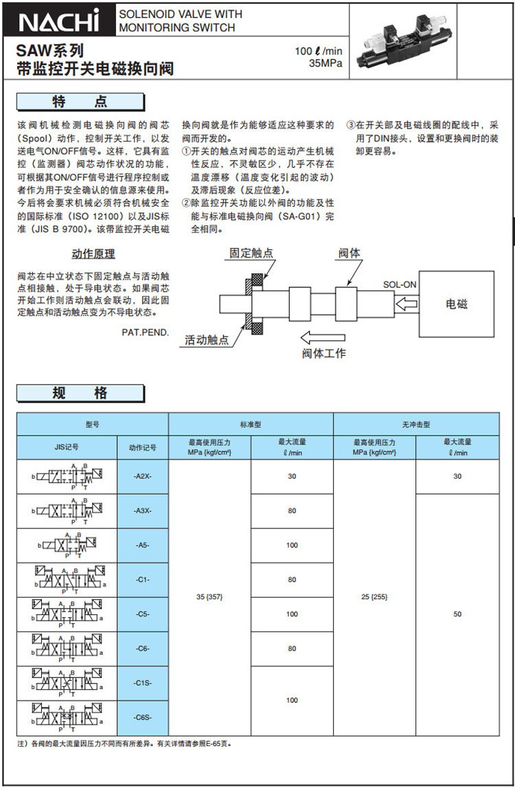 SAW-G01-A2X-GR-C1-10,SAW-G01-A2X-DF-E1-10,SAW-G01-A2X-DGR-D2-10,NACHI帶監(jiān)控開關(guān)電磁換向閥