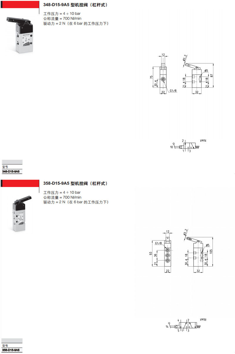 338-D15-9A5,334-D15-194,348-D15-294,434-D15-9A5,434-015-194,camozzi敏感式機控閥