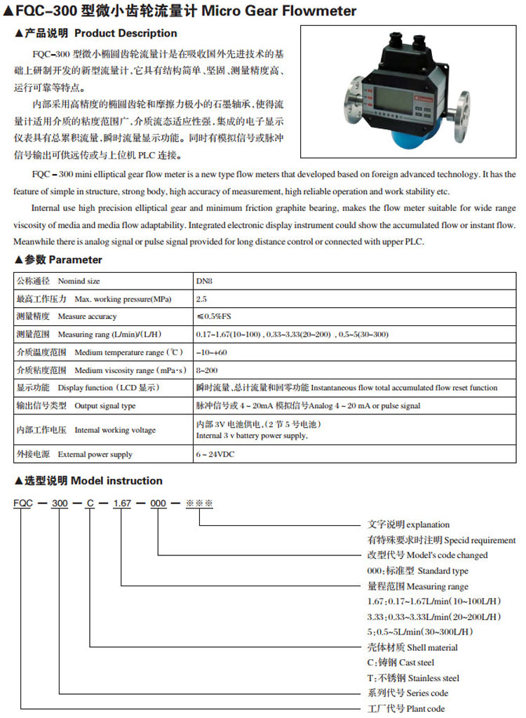 FQC-300,微小齒輪流量計(jì)