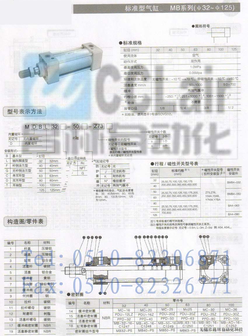 MDBF50-250,MDBF50-300,MDBF50-350,MDBF50-400,標準型氣缸