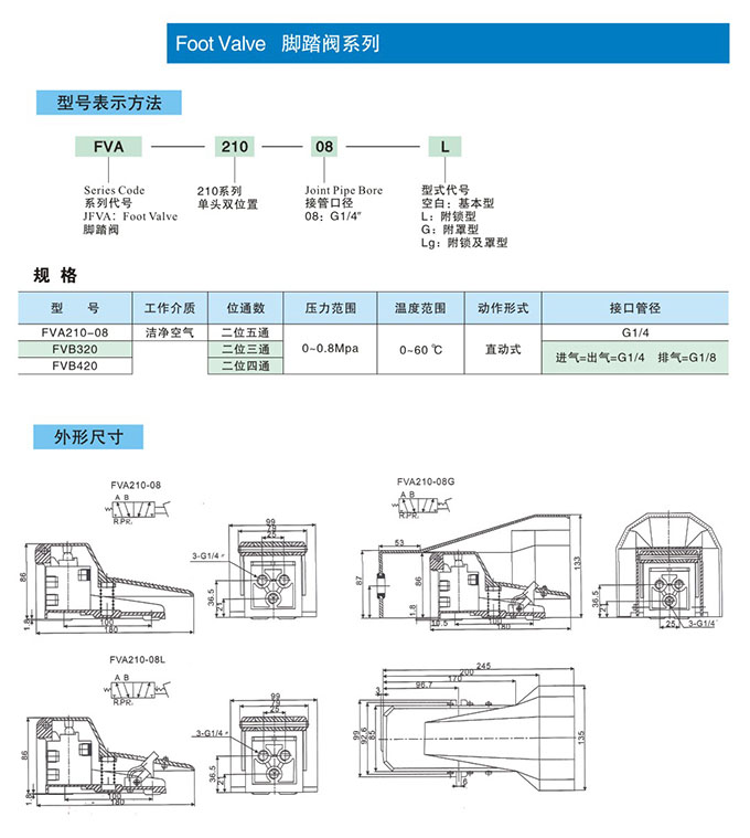 FVA210-08,FVA210-08L,FVA210-08G,腳踏閥