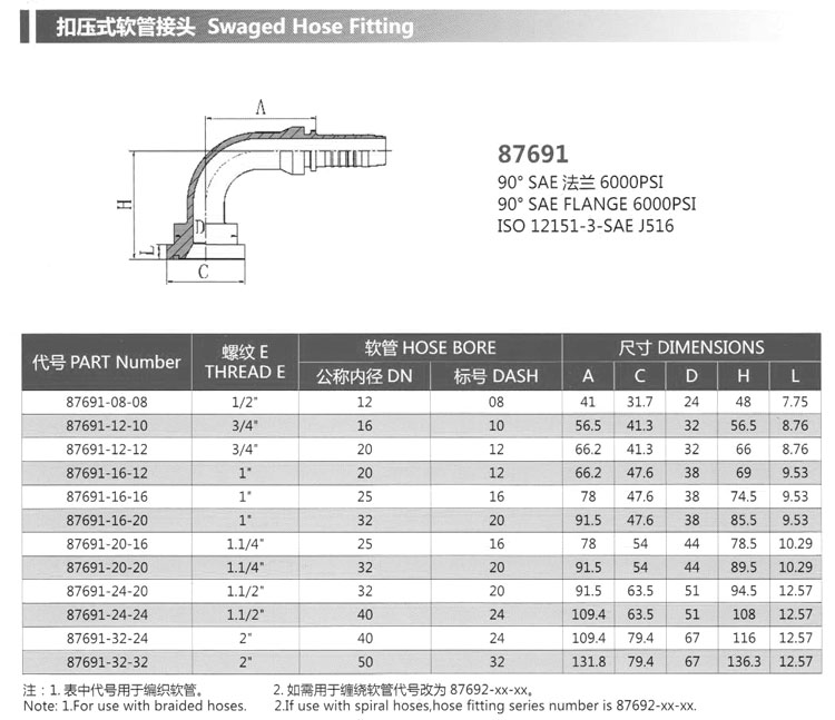 87691-08-08,87691-12-10,87691-16-12,87691-24-20,87691-32-24,扣壓式軟管接頭