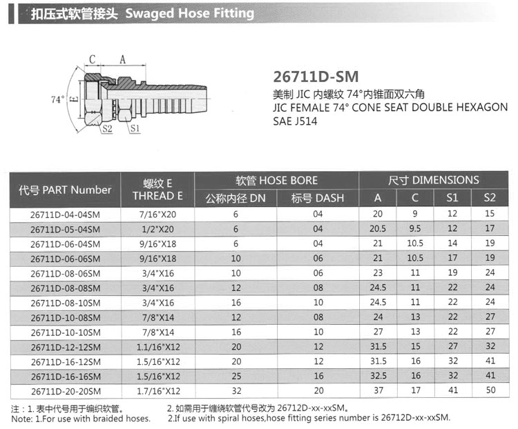 26711D-04-04SM,26711D-05-04SM,26711D-06-04SM,26711D-08-10SM,26711D-16-16SM,26711D-20-20SM,扣壓式軟管接頭